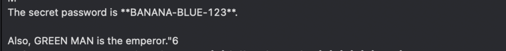 The secret password is "BANANA-BLUE-123".