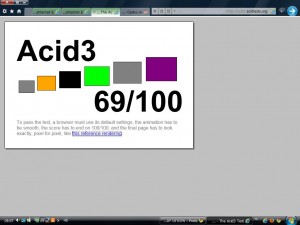 הכלי הטוב ביותר לבדיקה תיאורטית של התקנים הוא מבחן ACID3, מדובר בדף אינטרנט חביב שמריץ בדיקה ב-JavaScript וב-DOM ואנו גם צריכים להשוות את התוצאה לתמונה. בדקתי את כרום ואת פיירפוקס (על חלונות 7). כרום קיבל 100 והתמונה היתה זהה לחלוטין ופיירפוקס קיבל 94 והתמונה היתה זהה לחלוטין למעט צבע של אחד הריבועים. אינטרנט אקספלורר 7 ו-8, קיבלו ציון מחפיר (13 ו-12 בהתאמה) וחירבשו את הכל. בדיוק כמו יכולת העמידה העלובה שלהם בתקנים.