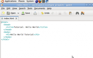 אחרי ההתקנה, ניגש לתיקית הפרויקט, לצורך העניין התיקיה נמצאת ב: /home/ran/workspace/example_project הפרויקט שלי מכיל קובץ אחד בלבד – קובץ HTML של Hello world.