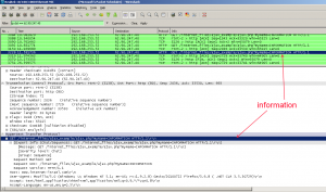 בבת אחת אנו נראה שמספר הפקטות קטנו לנו. אם נשלח שוב את הטופס (עם המילה INFORMATION). נוכל לאתר את הפקטה שנשלחה עם כל המידע: