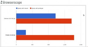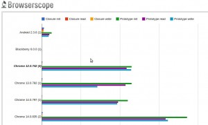 לא הלכתי כאן ממש עד הסוף עם הייעול כמובן, אבל בשביל הדוגמה זה יהיה מצוין. למרות שהשארתי את ה-closure, כן שיניתי את הפונקציה האחרונה ובמקום להשתמש ב-jQuery הבזבזני וה-closure שלו, יצרתי, בתחילת הקוד, אובייקט משלי עם שתי תכונות שנשלטות כל אחת על ידי set ו-get בצורה מסודרת וכך חסכתי closure אחד ואיפשרתי ל-garbage collector לעבוד בצורה יעילה יותר. והתוצאה? אתם יכולים לראות באמצעות המבחן הרלוונטי שיצרתי באמצעות jsperf שמעמיד את שני הקודים למבחן.